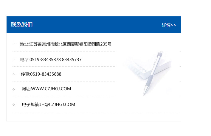 傳真:0519-83435688    郵編:213135    網址:WWW.czjhgj_com.yuchaifdj.com    電子郵箱:JH@czjhgj_com.yuchaifdj.com